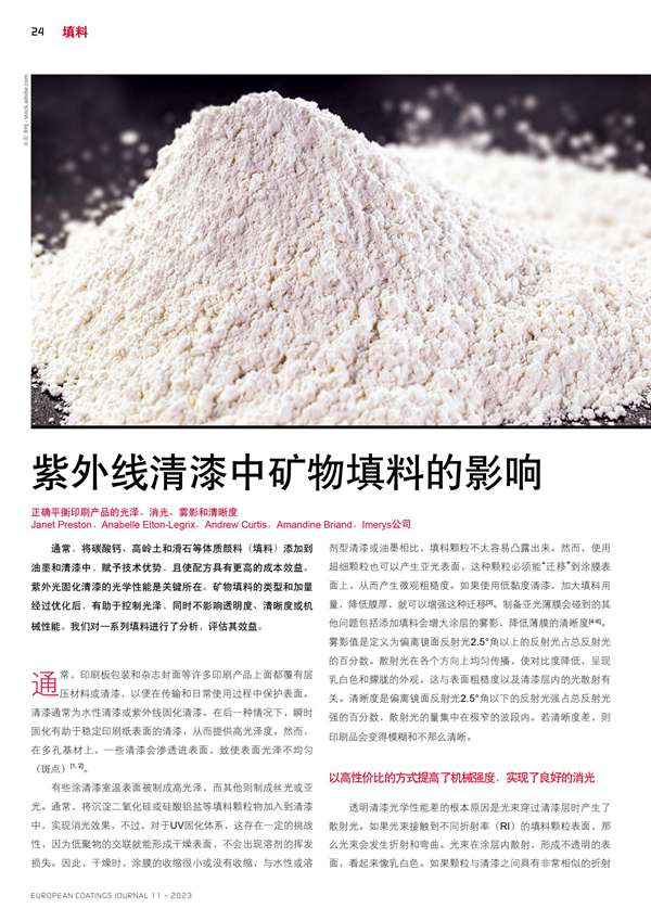 紫外線清漆中礦物填料的影響