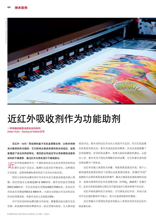 近紅外吸收劑作為油墨和涂料功能納米助劑