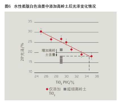 在水性柔版油墨中添加了這種高嶺土后,在不降低不透明 度或印刷濃度的前提下能優(yōu)化TiO2含量。
