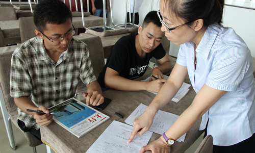 晨陽員工指導大學生填寫實習表