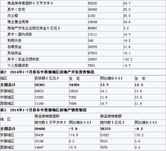 1-7月份,東部地區房地產開發投資28833億元,同比增長14.1%,增速比1-6月份回落0.5個百分點;中部地區投資10380億元,增長11.6%,增速回落0.3個百分點;西部地區投資11168億元,增長14.7%,增速回落0.1個百分點。