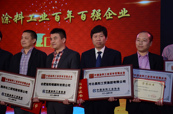 圖:晨陽水漆榮獲中國涂料工業百年百強企業獎