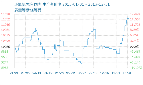 自01月01日至12月31日,環氧氯丙烷行業整體呈現上升態勢,01月01日國內企業出廠報價均價在10066.67元/噸,到12月31日國內企業出廠報價均價在14660.00元/噸,上漲幅度15.03%。