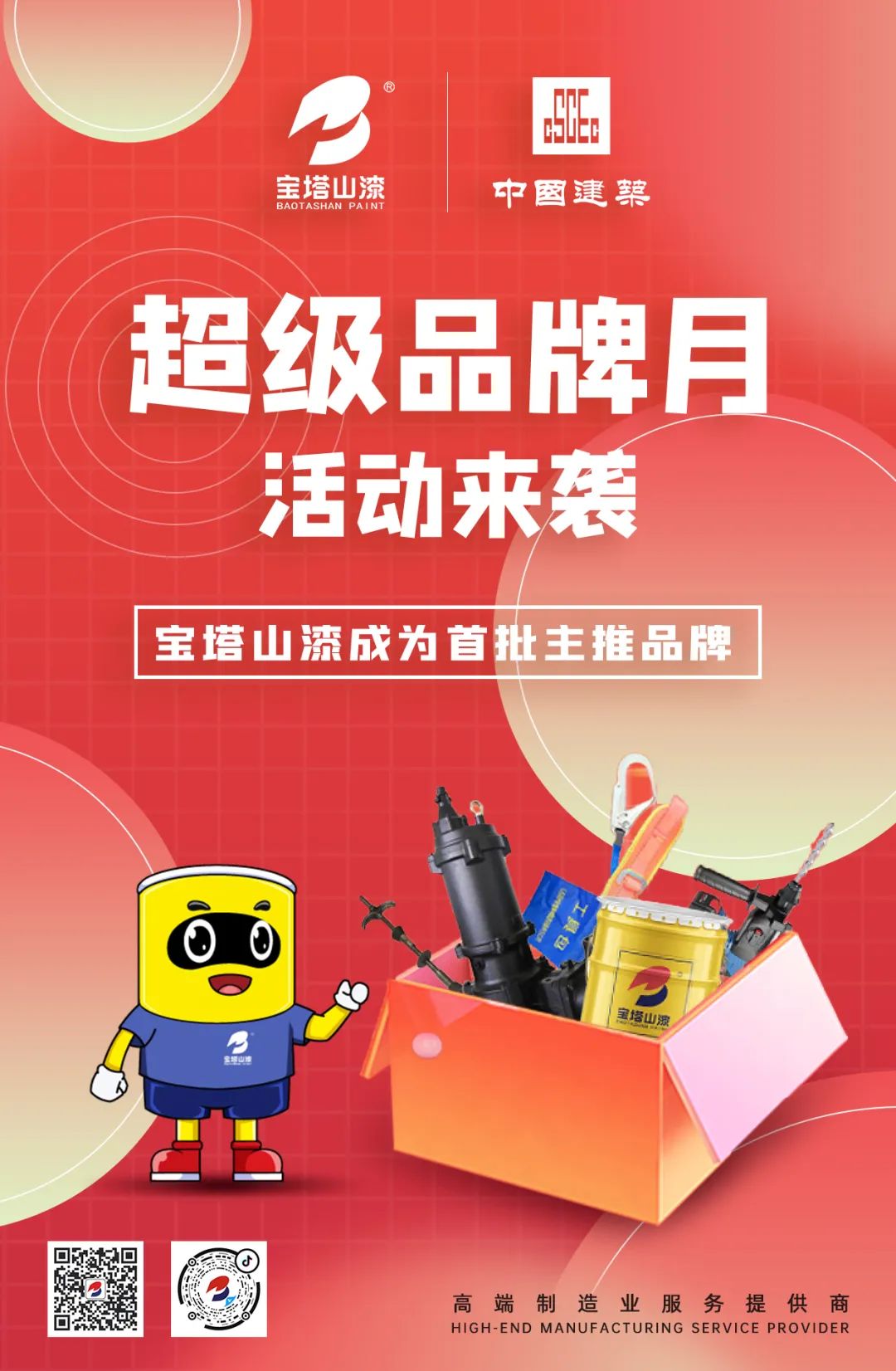2022年7月,中建集團攜手寶塔山漆推出“超級品牌月”活動,旨在精選大品牌,為中建集團選擇更合適、更正確、性價比更高的產品。
