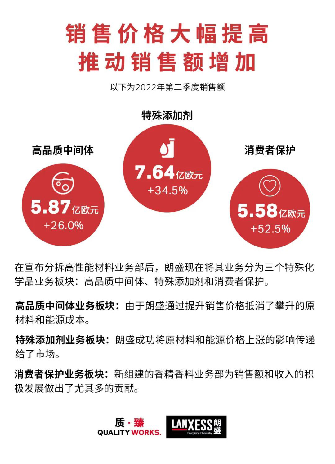 2022年8月9日,朗盛發布了第二季度財報。在原材料和能源成本上漲、物流條件困難的嚴峻形勢下,朗盛第二季度收入再度增加,繼續保持穩健發展。