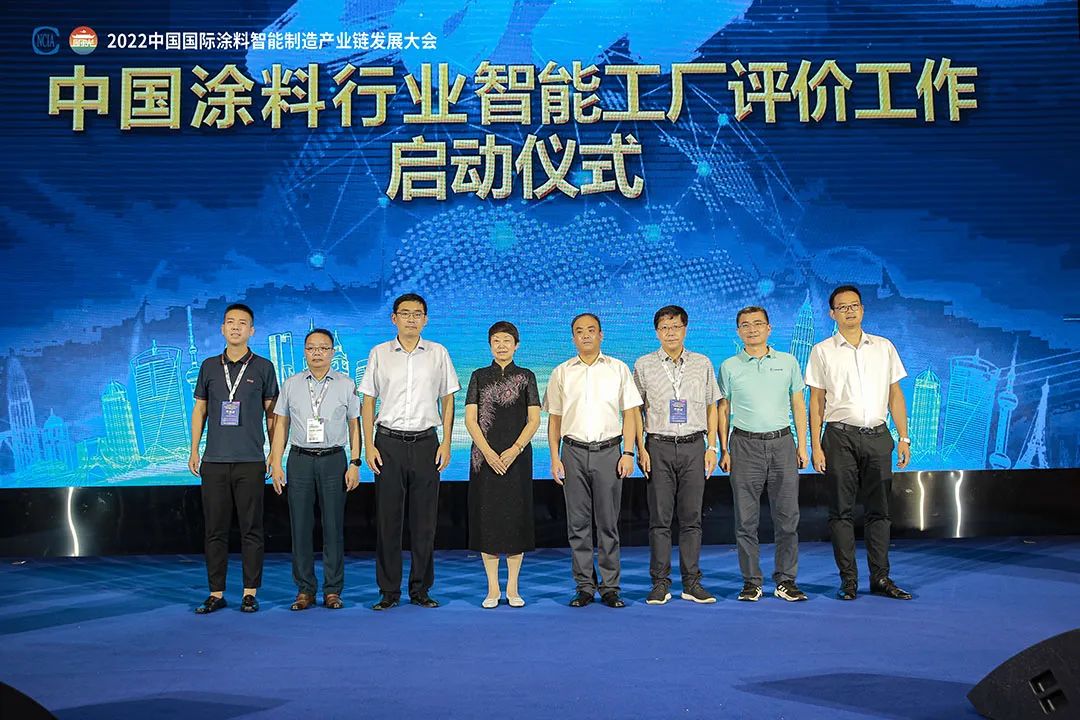 中國涂料工業協會會長孫蓮英,明光市人民政府副市長劉靜,工業和信息化部賽迪研究院產業政策研究所所長董凱、國家智能制造專家委員會委員、上海市智能制造產業協會會長徐洪海,廣東金寶力化工科技裝備股份有限公司,珠海市長陸工業自動控制系統股份有限公司董事長何曉東,江蘇湯姆森智能裝備有限公司總裁助理湯姆,重慶渝輝智能裝備有限公司總經理賈思宇共同啟動“中國涂料行業智能工廠評價”工作。