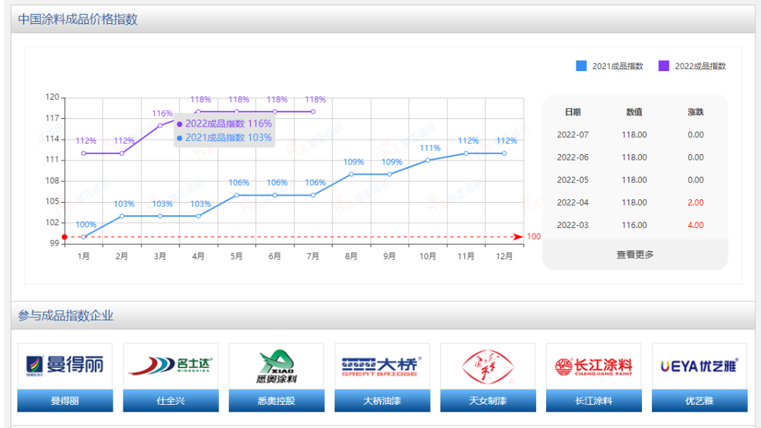 涂料價格指數(shù)的參與單位