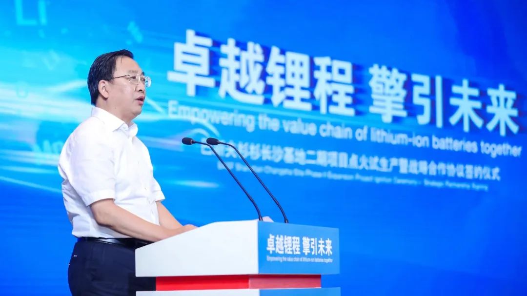 湖南省委常委、長沙市委書記吳桂英,長沙市委副書記、湖南湘江新區黨工委書記、岳麓區委書記譚勇等政府領導,巴斯夫大中華區董事長兼總裁樓劍鋒博士,寧波杉杉股份有限公司董事兼湖南永杉鋰業有限公司董事長楊峰,巴斯夫電池材料全球高級副總裁兼巴斯夫杉杉電池材料有限公司董事長貝銘凱博士(Dr. Michael Baier),巴斯夫全球高級副總裁鄭大慶博士,真鋰研究創始人、總裁墨柯及國內外行業各方代表,以及巴斯夫杉杉CEO楊捷、常務副總經理暨COO暨CTO彭文杰等公司代表出席儀式并共同見證。