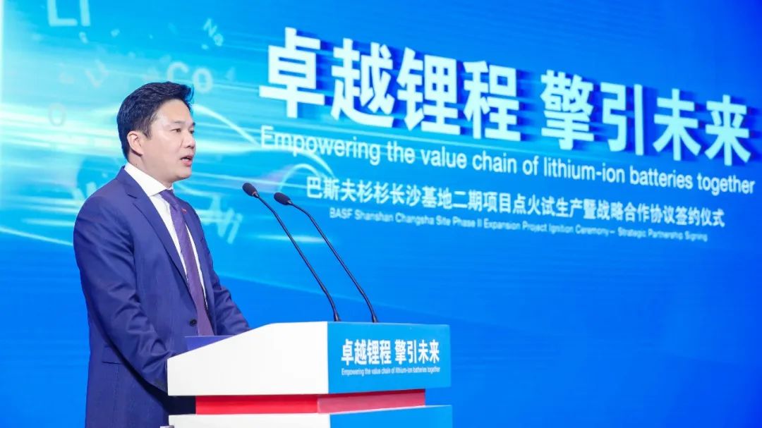 譚勇在點火試生產啟動上發表講話。他表示,巴斯夫杉杉作為正極材料行業的標桿企業,為湖南打造先進儲能材料產業集群高地、高質量譜寫低碳可持續發展新篇章提供了強力支撐。期待企業繼續加強政企協作,加快規模化建設,穩步提升產能,為社會高質量發展作出更大貢獻。
