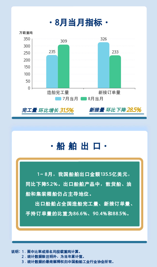 一圖讀懂:2022年1~8月船舶統計數據
