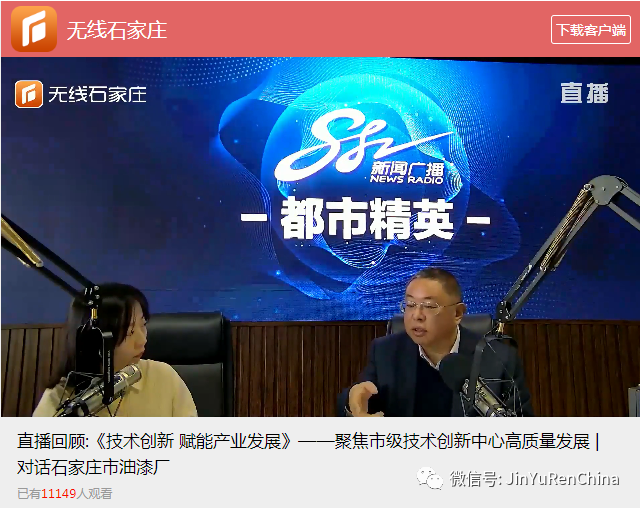 10月11日下午,【石家莊新聞廣播882】科技企業(yè)系列專訪《技術(shù)創(chuàng)新 賦能產(chǎn)業(yè)發(fā)展》欄目,特邀石家莊市油漆廠(“金魚漆”)董事長焦亞平先生,走進(jìn)直播間——對話石家莊市油漆廠,聚焦石家莊市水性工業(yè)涂料技術(shù)創(chuàng)新中心高質(zhì)量發(fā)展。