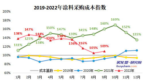 伴隨國際經濟形勢和地緣沖突等影響,疊加新冠疫情和風控影響,在涂料下游需求疲軟的情況,涂料上游原材料的行情波動幅度陡然增加,單月漲跌幅超過20%,這對于涂料企業的采購計劃,產生了非常不利的影響。原材料價格的變化雖波動明顯但均值較高,涂料成品變化幅度不大但均值較低,成品價格的上漲幅度遠不及原材料。如果從價格傳導來看,國內涂料企業承擔較為嚴峻的成本壓力。如何建立起穩健、有效的采購策略和采購計劃,來抵消原材料波動帶來的被動影響,將是目前涂料企業保證企業利潤的工作之一。