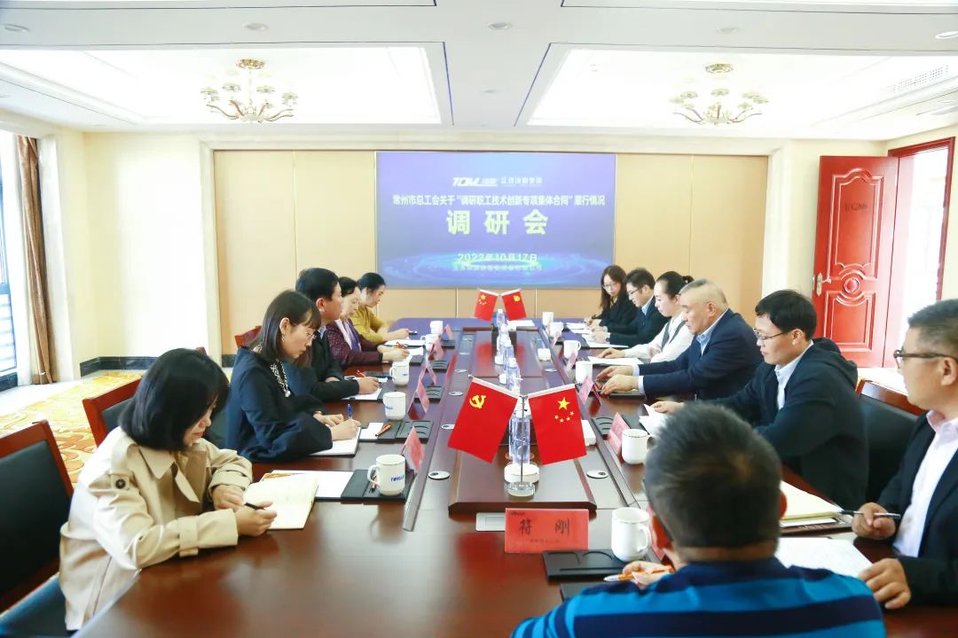 金風(fēng)送爽,秋色宜人,在黨的二十大勝利召開之際,10月17日下午,在區(qū)總工會(huì)副主席人社局副局長劉建華陪同下,常州市總工會(huì)集體協(xié)商專家王延花、奚志英等一行走訪了江蘇湯姆集團(tuán),并召開了關(guān)于“職工技術(shù)創(chuàng)新專項(xiàng)集體合同”履行情況調(diào)研會(huì)。