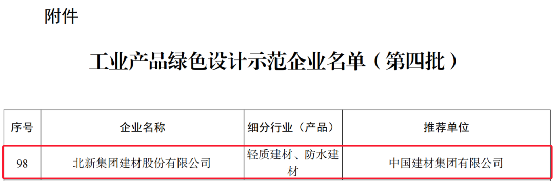 喜訊|北新建材獲評工信部工業產品綠色設計示范企業