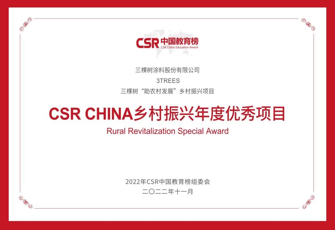 三棵樹“助農村發展”鄉村振興項目榮獲CSR CHINA鄉村振興年度優秀項目