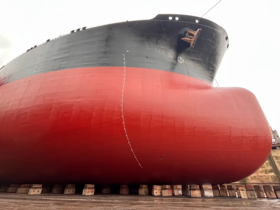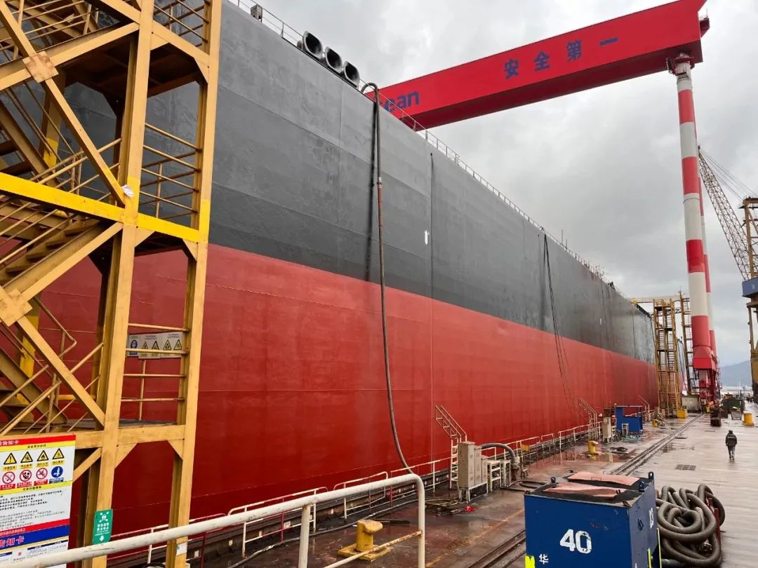 日前,魚童漆助力的30萬載重噸超大型油船(VLCC),在太平洋海洋工程有限公司的巨型船塢內(nèi)完成塢修保養(yǎng)。經(jīng)過魚童漆“全副武裝”后,身披靚麗防護(hù)衣的超大型油船雄姿英發(fā),豪邁地朝著下一個(gè)航程奮力前進(jìn)。
