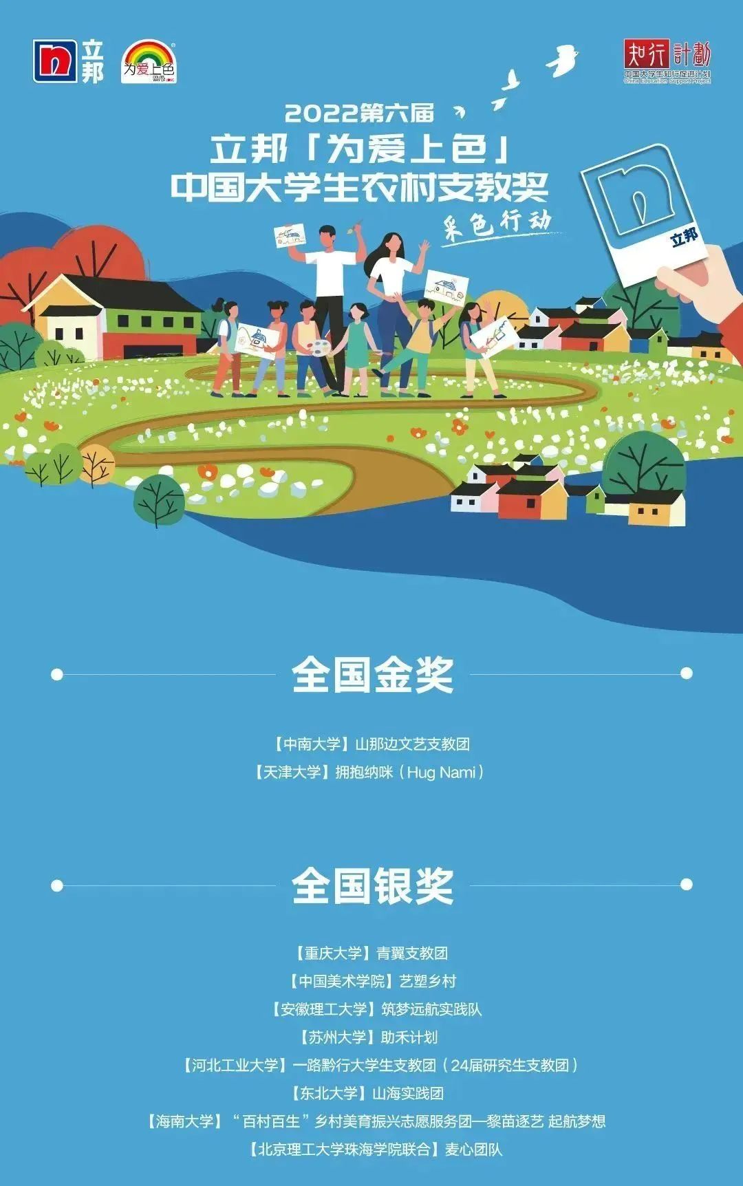 2022年第六屆立邦「為愛上色」中國大學(xué)生農(nóng)村支教獎獲獎名單