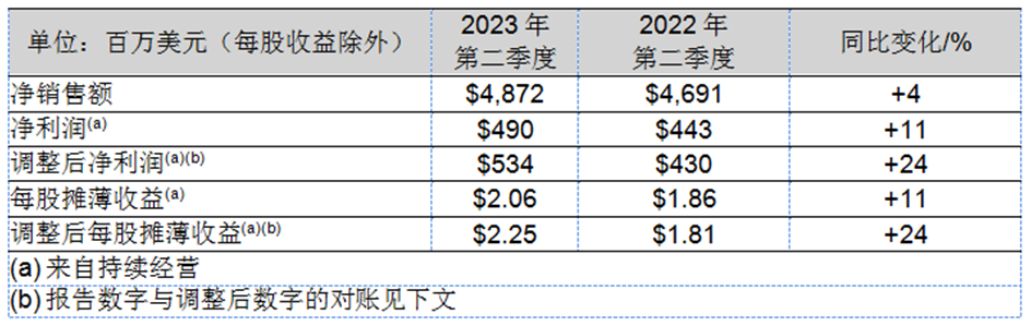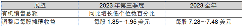 2023年第三季度的有效稅率預計在23%~24%,高于2022年第三季度,主要原因在于上年的非經常性離散稅項。有效稅率上漲預計將對2023年第三季度的調整后每股攤薄收益產生不利影響,影響幅度約為0.07~0.09美元。