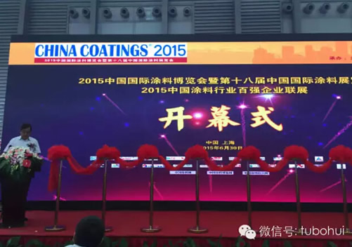 2015中國國際涂料博覽會暨第十八屆中國國際涂料展覽會于2015年6月30日,在上海新國際展覽中心盛大開幕。中國石油和化學工業聯合會會長李勇武、中國涂料工業協會會長孫蓮英、秘書長楊淵德、上海市經濟團體聯合會執行會長陳啟豪、上海金山區常委/副區長劉健、ACA主席Andy Doyle、中國人民解放軍原總參四部副部長郝葉力、上海華誼精細化工有限公司總經理楊紅妹、立邦中國建筑涂料事業群副總裁陳仁宗、紫金花涂料集團總裁葉鈞、上海涂料染料行業協會秘書長張水鶴、APIC各位代表等嘉賓及眾多涂料行業專家、展商出席了此次開幕儀式。