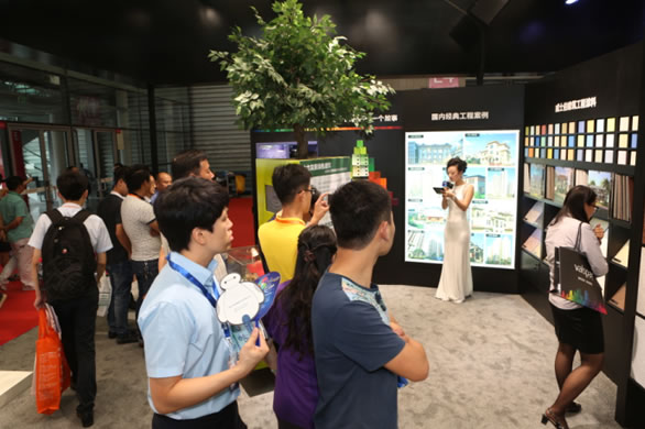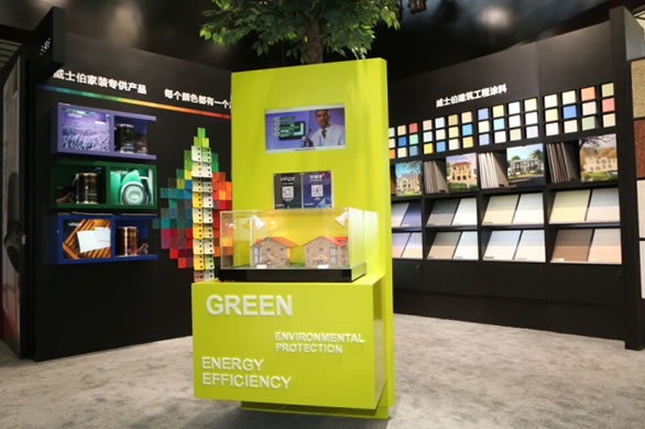 秉承著“關愛地球,重視可持續發展,堅持綠色環保”的理念,威士伯很早就開始了綠色節能涂料的研發和應用。本次威士伯產品展區展出的擁有美國專利技術的綠能全效墻面漆系統,是威士伯建筑涂料為促進綠色建筑發展而研發的提供一站式節能及色彩解決方案的高端產品體系。綠能體系特有的綠能硅球技術、高效反射技術和超親水界面等核心技術,能很好控制墻體熱量的吸收和傳遞,有效改善室內溫度及濕度,節省空調制冷能耗,打造出更自然舒適的室內環境。此外,該體系還應用了寬域視覺色彩技術,采用了特殊紅外反射顏料,突破了傳統反射隔熱涂料只能在白色或淺色系下才具有較好反射隔熱效果的壁壘,令建筑物達到節能與色彩的平衡統一。目前,威士伯綠能全效墻面漆系統,在改善城市生態,構筑人居和諧平衡等方面正發揮著積極的作用,因而受到了眾多地產商、建筑設計師以及施工單位的信賴。