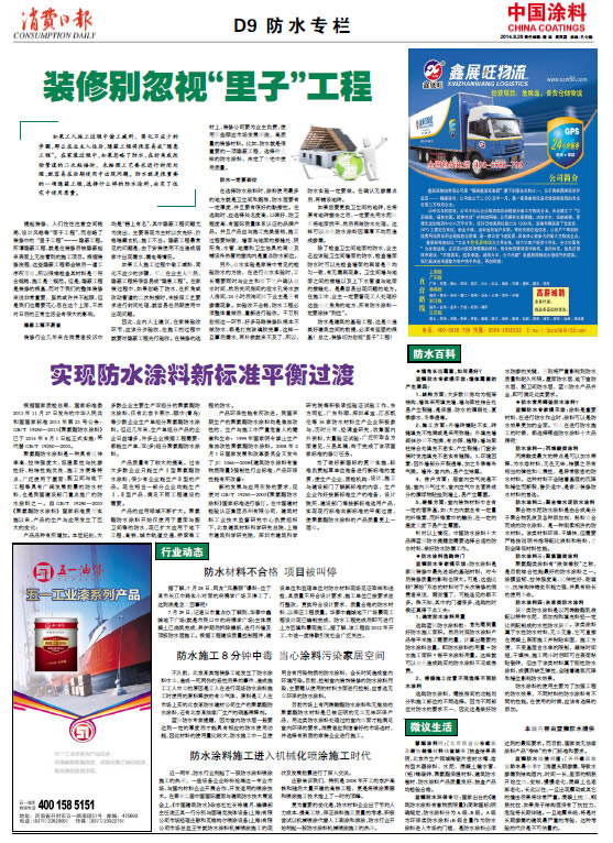 《中國涂料報》(電子版)的一切內容(包括但不限于文字、圖片、PDF、圖表、標志、標識、商標、版面設計、專欄目錄與名稱、內容分類標準以及為讀者提供的任何信息)僅供中國涂料信息網讀者閱讀、學習研究使用,未經中國涂料雜志社有限公司及/或相關權利人書面授權,任何單位及個人不得將《中國涂料報》(電子版)所登載、發布的內容用于商業性目的,包括但不限于轉載、復制、發行、制作光盤、數據庫、觸摸展示等行為方式,或將之在非本站所屬的服務器上作鏡像。否則,中國涂料雜志社有限公司將采取包括但不限于網上公示、向有關部門舉報、訴訟等一切合法手段,追究侵權者的法律責任。