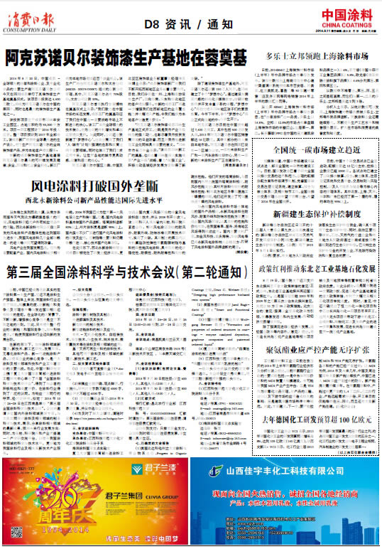 《中國涂料報》(電子版)的一切內容(包括但不限于文字、圖片、PDF、圖表、標志、標識、商標、版面設計、專欄目錄與名稱、內容分類標準以及為讀者提供的任何信息)僅供中國涂料信息網讀者閱讀、學習研究使用,未經中國涂料雜志社有限公司及/或相關權利人書面授權,任何單位及個人不得將《中國涂料報》(電子版)所登載、發布的內容用于商業性目的,包括但不限于轉載、復制、發行、制作光盤、數據庫、觸摸展示等行為方式,或將之在非本站所屬的服務器上作鏡像。否則,中國涂料雜志社有限公司將采取包括但不限于網上公示、向有關部門舉報、訴訟等一切合法手段,追究侵權者的法律責任。