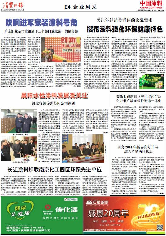 《中國涂料報》(電子版)的一切內容(包括但不限于文字、圖片、PDF、圖表、標志、標識、商標、版面設計、專欄目錄與名稱、內容分類標準以及為讀者提供的任何信息)僅供中國涂料信息網讀者閱讀、學習研究使用,未經中國涂料雜志社有限公司及/或相關權利人書面授權,任何單位及個人不得將《中國涂料報》(電子版)所登載、發布的內容用于商業性目的,包括但不限于轉載、復制、發行、制作光盤、數據庫、觸摸展示等行為方式,或將之在非本站所屬的服務器上作鏡像。否則,中國涂料雜志社有限公司將采取包括但不限于網上公示、向有關部門舉報、訴訟等一切合法手段,追究侵權者的法律責任。